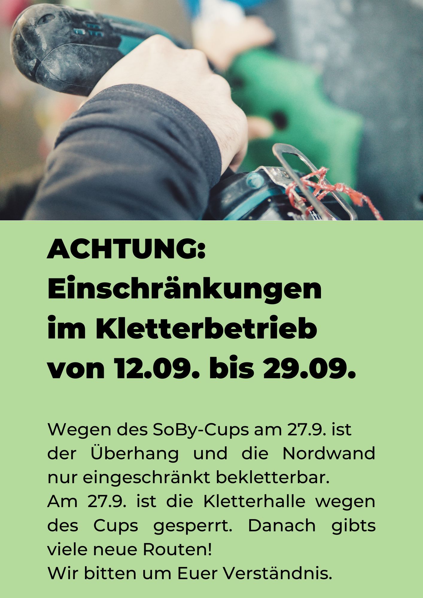 Kletterhalle am 27.09. wegen des SoBy Cups gesperrt